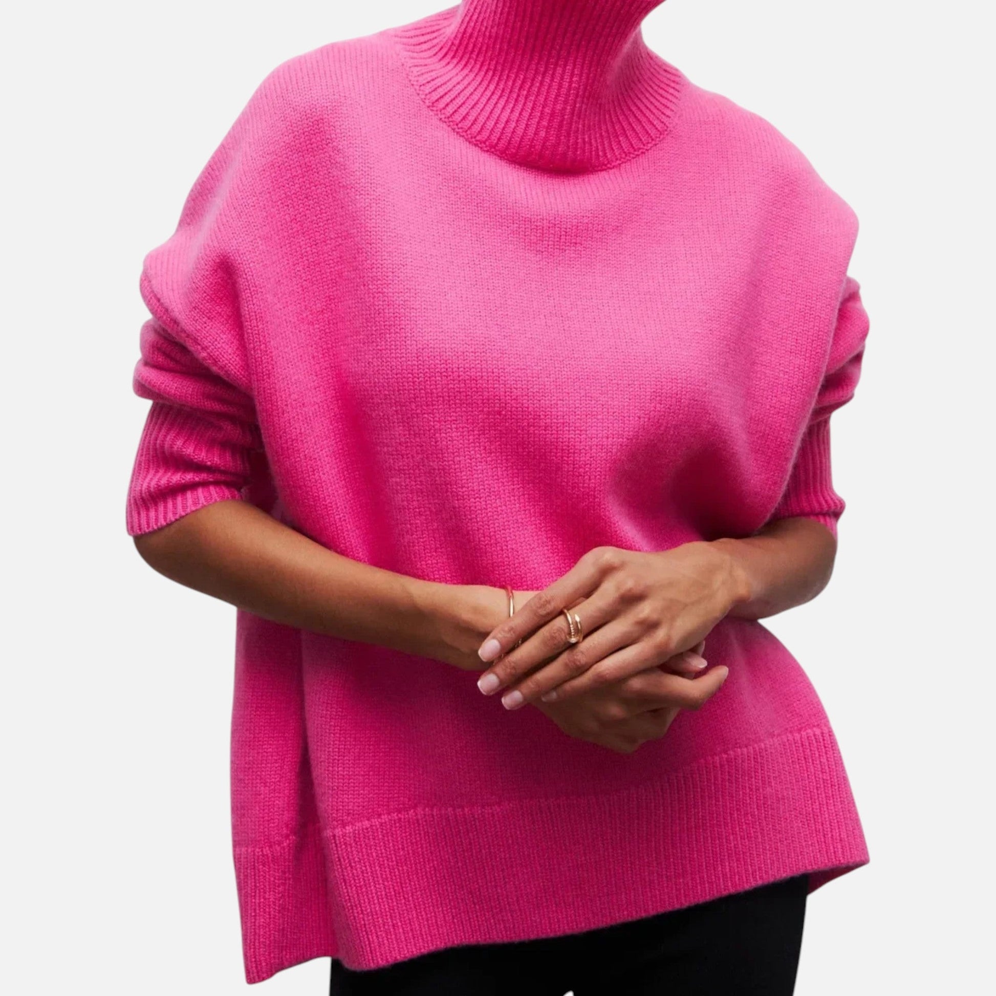 - Oversized turtleneck sweater for comfort and style